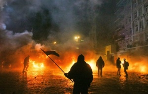 Более 16 часов продолжаются столкновения демонстрантов с бойцами внутренних войск и спецподразделения "Беркут" в центре Киева на улице Грушевского возле стадиона "Динамо.
