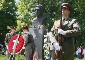 Предстоятель БПЦ вместе с градоначальником возложил венок к памятнику Христову. В церемонии также приняли участие Софийский патриарший хор и легендарный хор „Гусла", в котором в свое время выступал и сам певец.